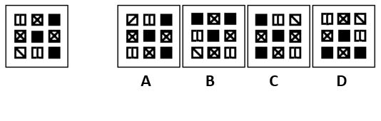 Choose the shape (A-D) that is identical to the first, only rotated.